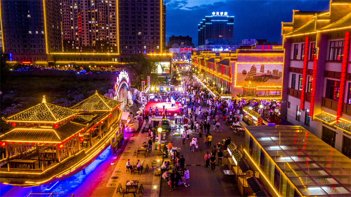 福街民族夜市。以“古街新潮”的人文理念為特色,激發(fā)城市活力,主要包括餐飲區(qū)、后備箱市集、地攤區(qū)、兒童娛樂區(qū)、景觀互動區(qū)、舞臺演藝區(qū),除了餐飲、購物、燈光秀、兒童游樂設(shè)施等,設(shè)計以場景為特色的歲月街區(qū),以及線上流行元素為特色的網(wǎng)紅街區(qū),更增加了高品質(zhì)的的文化、體育、競技、表演等產(chǎn)品,充分挖掘本地文化旅游資源,已成為盤錦地區(qū)較具影響力的地標(biāo)文化夜市,讓游客在百年福街體會具有文化氣息的吃喝玩樂購。